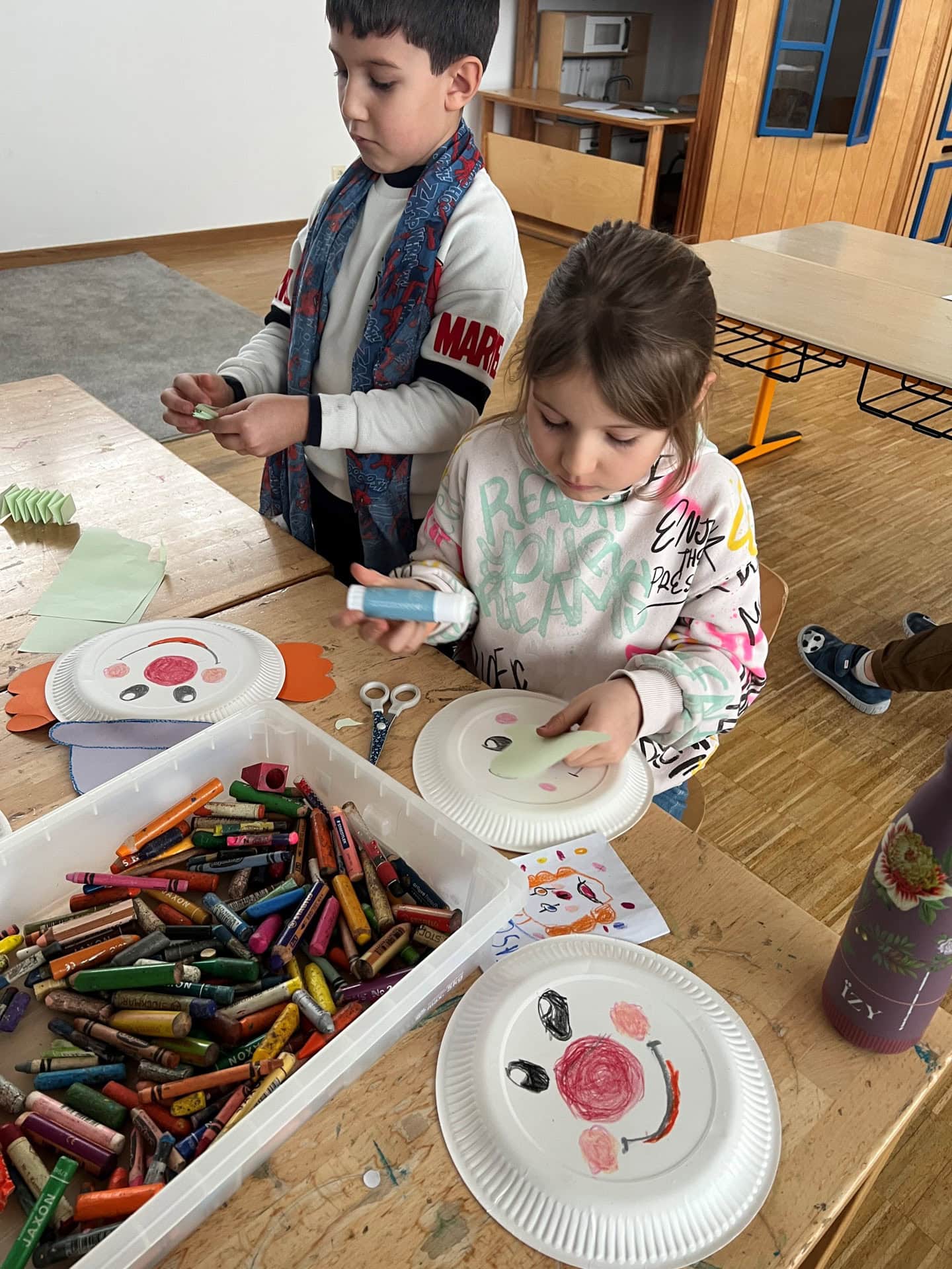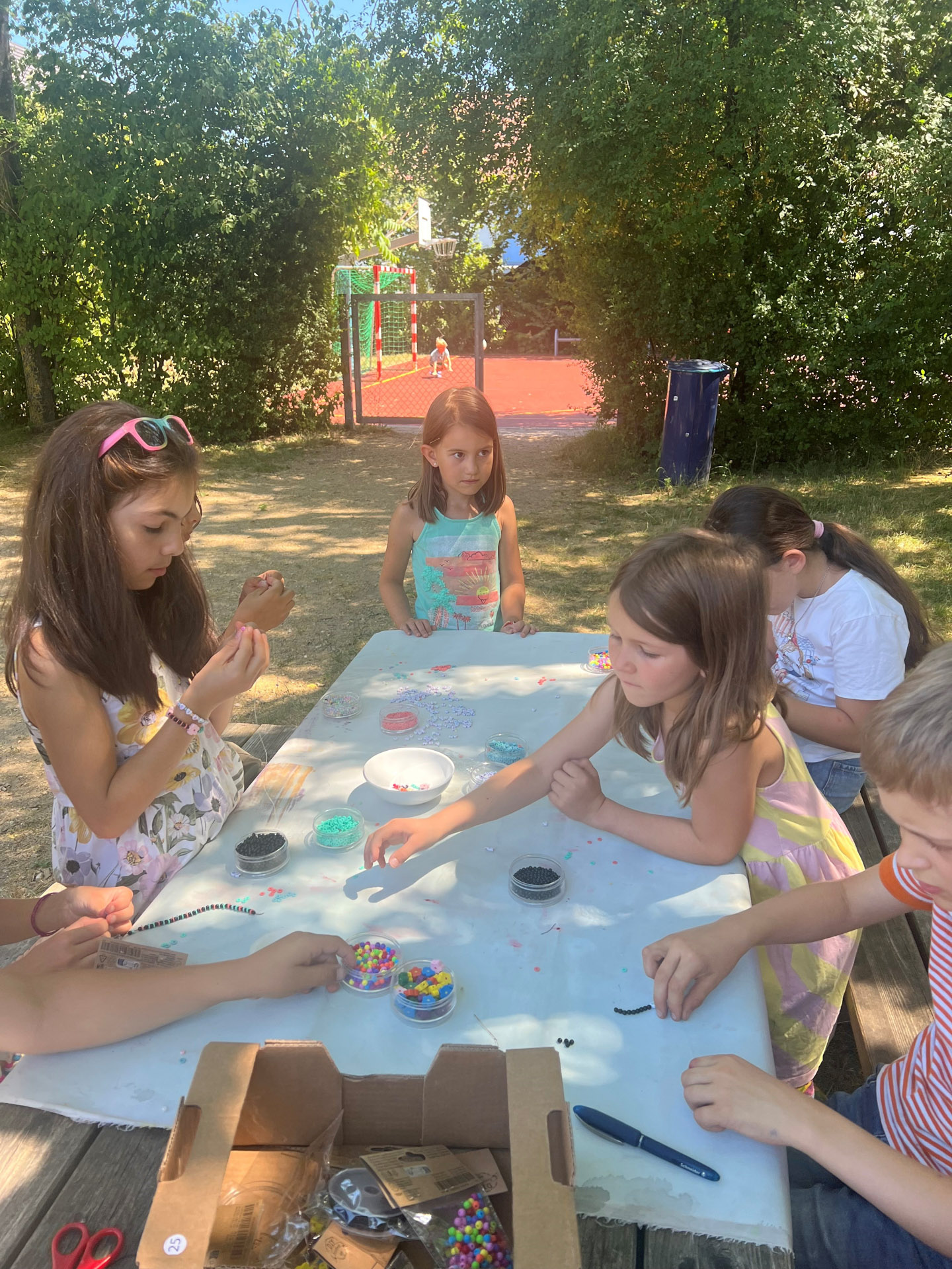 Wir bieten liebevolle Betreuung mit einem großen Spiel‑, Bastel- und Bewegungsangebot an. Dafür steht uns im Schulhaus ein eigener Gebäudeteil mit Speiseraum, Hausaufgabenzimmer und vier weiteren großen Gruppenräumen sowie kleineren Sozialräumen und eigenem Sanitärbereich zur Verfügung. Durch den direkten Zugang zum Außenbereich und die Mitnutzung der Turnhalle können die Kinder je nach Bedürfnis zwischen Bewegung, kreativen Angeboten, Freispiel, Lesen in der Kinderbücherei und unterschiedlichen angeleiteten Angeboten wählen. Feste wie Weihnachten, Fasching und den Schuljahresabschluss feiern wir im Jahresverlauf mit den Kindern und weitere außerplanmäßige Aktivitäten wie Kochen, Backen oder Spielplatzbesuche stehen regelmäßig auf dem Programm.