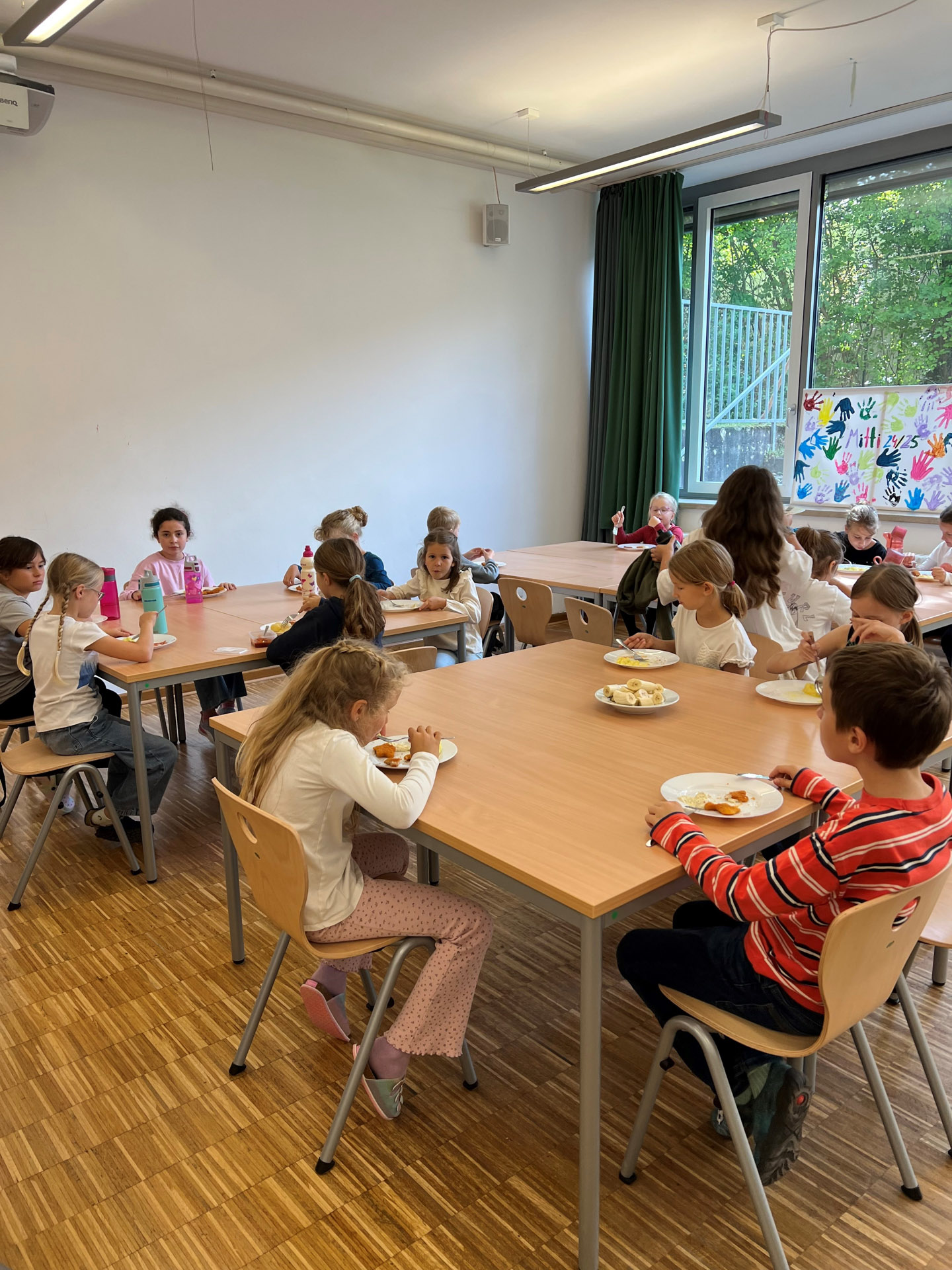 In diesem Schuljahr betreuen wir ca. 75 Kinder in drei Kurzgruppen bis 14.00 Uhr und zwei Langgruppen bis 15.30 Uhr mit verlässlicher Hausaufgabenbetreuung. Die Teilnahme am Mittagessen ist für die Kinder der langen Gruppe obligatorisch, für die Kurzgruppe ist das Mittagessen optional zubuchbar.