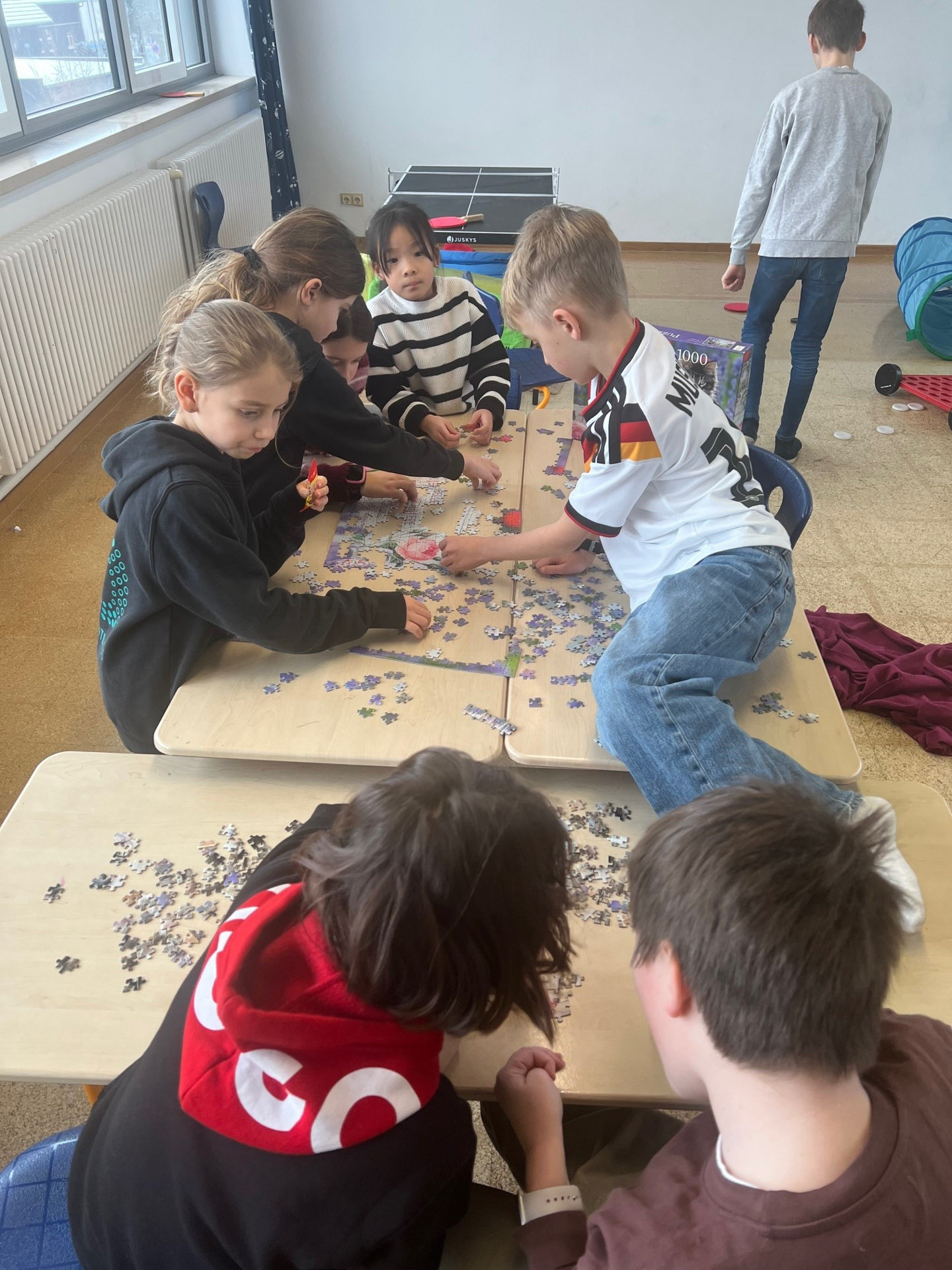 Wir arbeiten in der OGTS mit einem offenen Konzept, das heißt, die Kinder werden bei uns bewusst nicht in feste Gruppen eingeteilt, sondern dürfen zwischen den einzelnen Angeboten und Räumlichkeiten frei wählen. So können wir sowohl auf das tagesaktuelle Bedürfnis der Kinder eingehen als auch einen Austausch über den Klassenverbund hinaus ermöglichen und ein buntes Miteinander von „Groß“ und „Klein“ fördern.